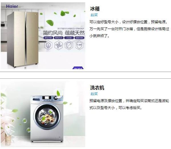 橱柜:橱柜可以说是厨房的大哥级人物,不仅要有高颜值,更要实用、环保、耐用,现在比较流行定制整体橱柜,另外橱柜的五金很重要,因为开关抽拉使用频率较高。最后小编不得不说的是台面,目前主要以石英石台面为主,石英石含量越高,厚度越厚,质量好的台面就不易开裂、吸色,也不怕烫!橱柜是大头,选品质商家很重要。