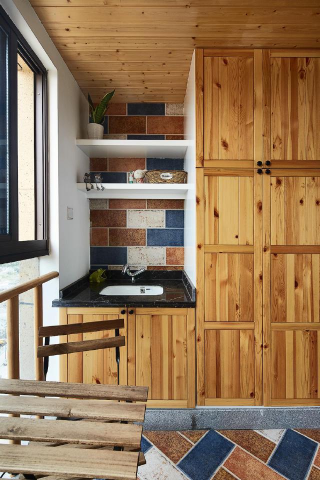 不封顶的阳台柜子,让强迫症的人舒服了几分,整体看起来有张有弛,拿取柜子里的东西也是非常的方便,带给我们更多的休闲生活。