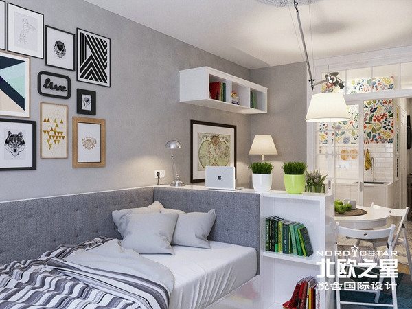 3. 利用墙面空间:在墙面上安装书架、置物架,增加储物空间,同时避免占用地面面积。