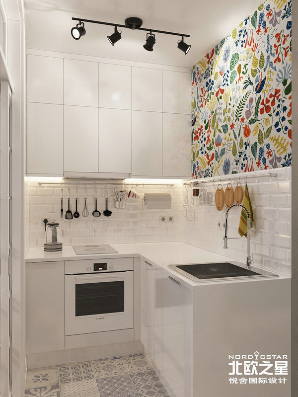 4. 选择明亮的色彩:浅色调能使空间显得更大,更加明亮;可以通过成品墙纸、涂料或单品装饰提升整体风格。
