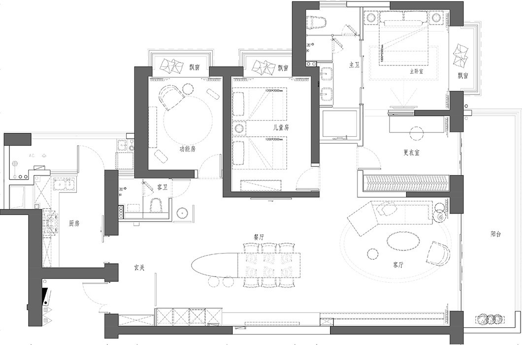 空间整体用极简的设计手法,开放的布局,造型干净利落的顶面与墙面,体现出现代简约生活的品质感。