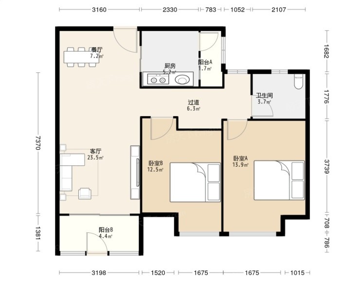 因为是刚需房,对于面积来说肯定是希望尽可能地都给充分利用起来