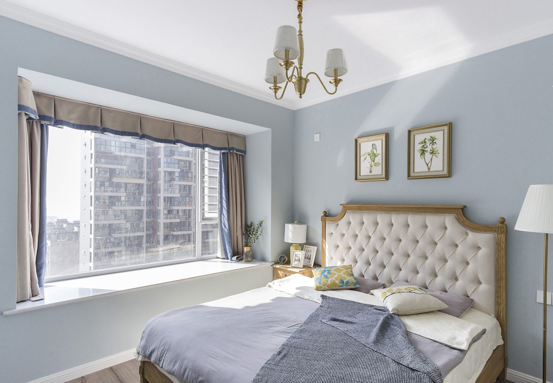 主卧的面积比较小,阳台的飘窗引进大量温暖的阳光,