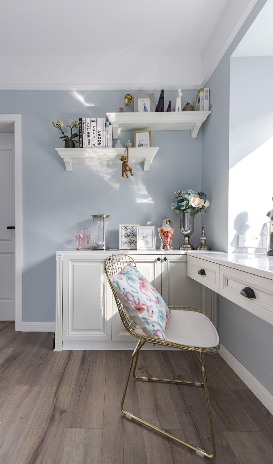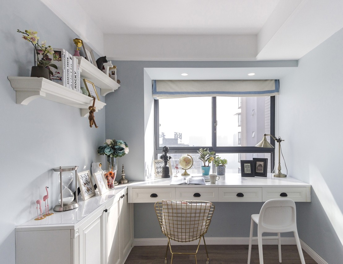 说是书房,也是一个多功能房,为了保证南北通透,这个房间平日里就作为书房使用,书桌旁的窗户让整个公共空间从南到北 光与气在自然流动