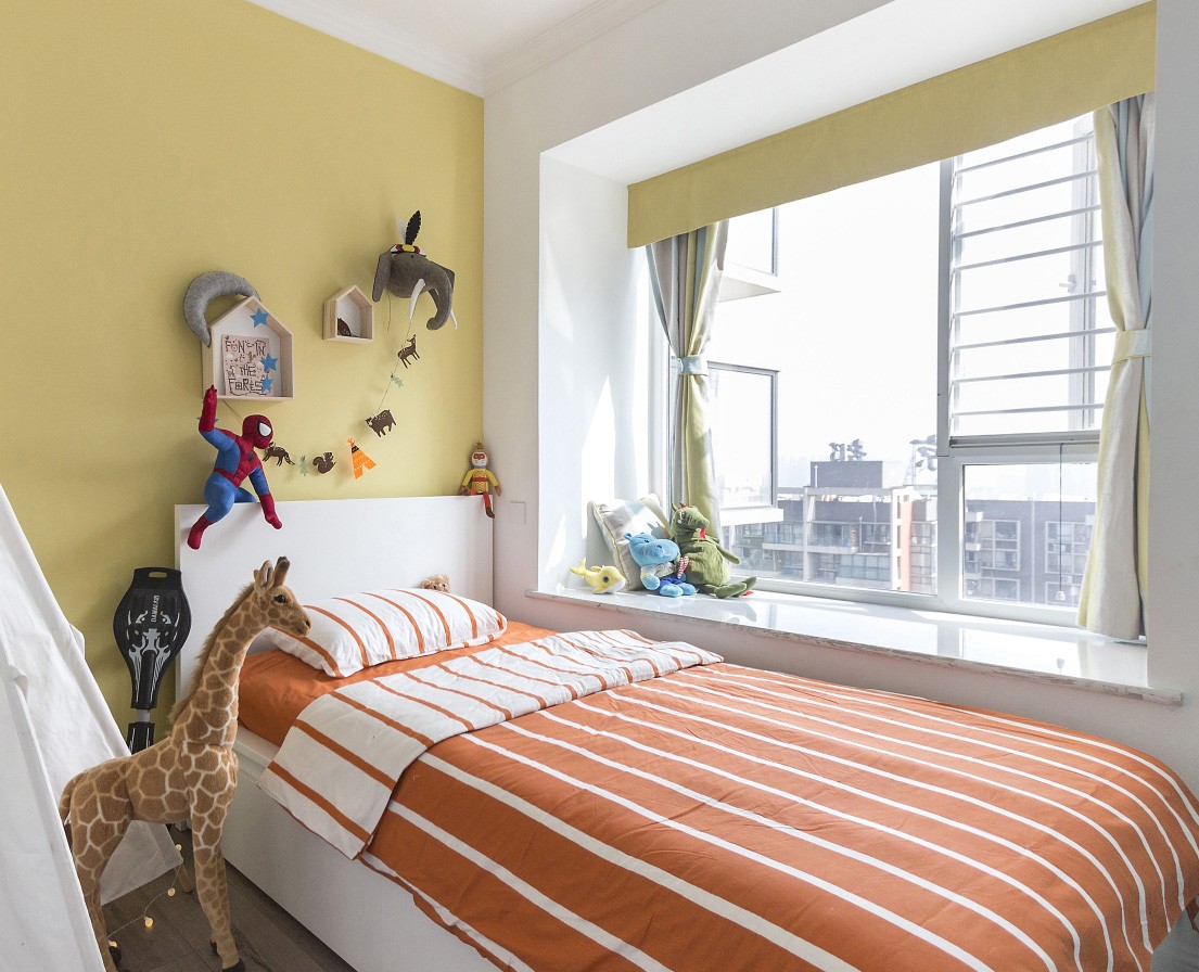 充满童趣的儿童房,选择黄色作为底色,搭配飘窗的阳光,让整个空间明亮舒适。