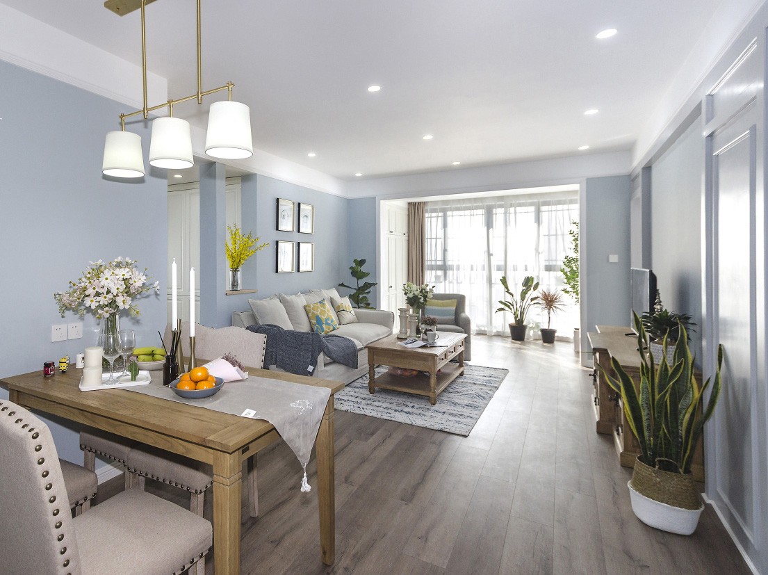 所以我们把朝南的所有阳台都包了进来,邻着客厅的阳台自然被纳入客厅,让原本看着略显局促的公共空间瞬间通透、敞亮了起来,深化了南北通透的效果。