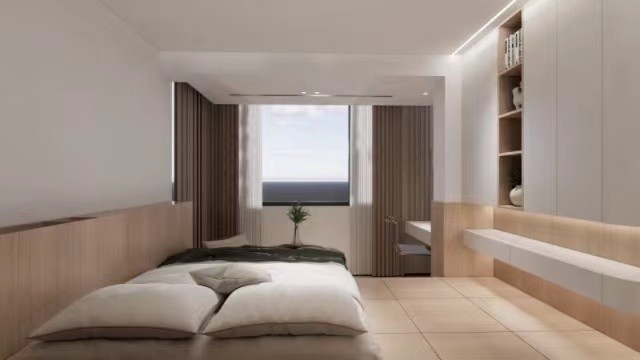 衣柜的下半部分做了原木色系,和地板颜色一致,空间感非常舒适大气
