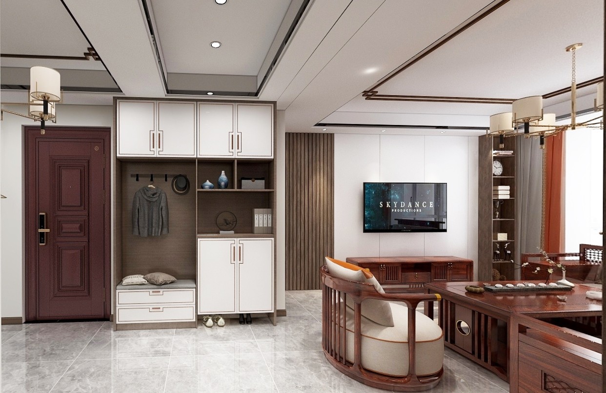 三室两厅全屋新中式装修,轻奢元素融入中式风格。