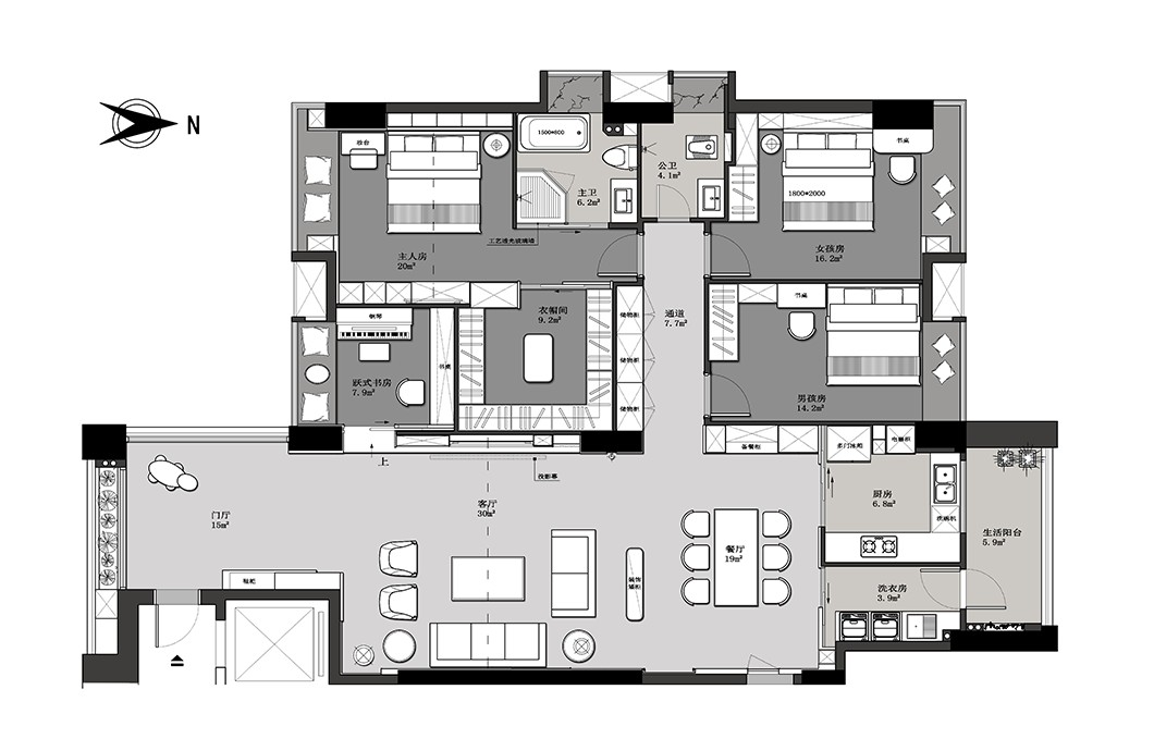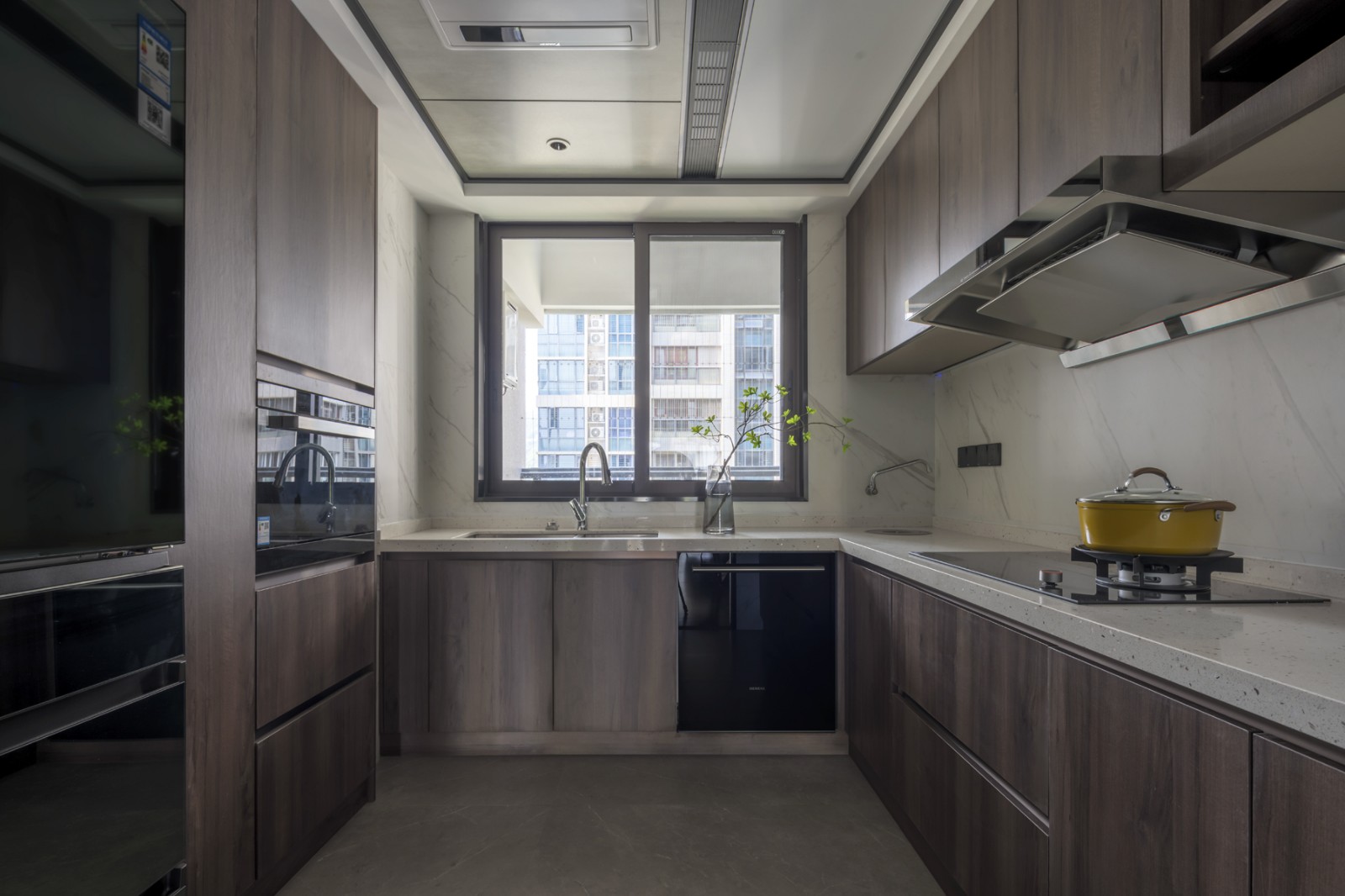 项目地址:昆玉九里 项目名称:灰木之间 装修风格:现代台式 主要材料:胡桃木饰面板、粗石皮、皮格硬包、柔光砖、实木木地板、柔光烤漆门板