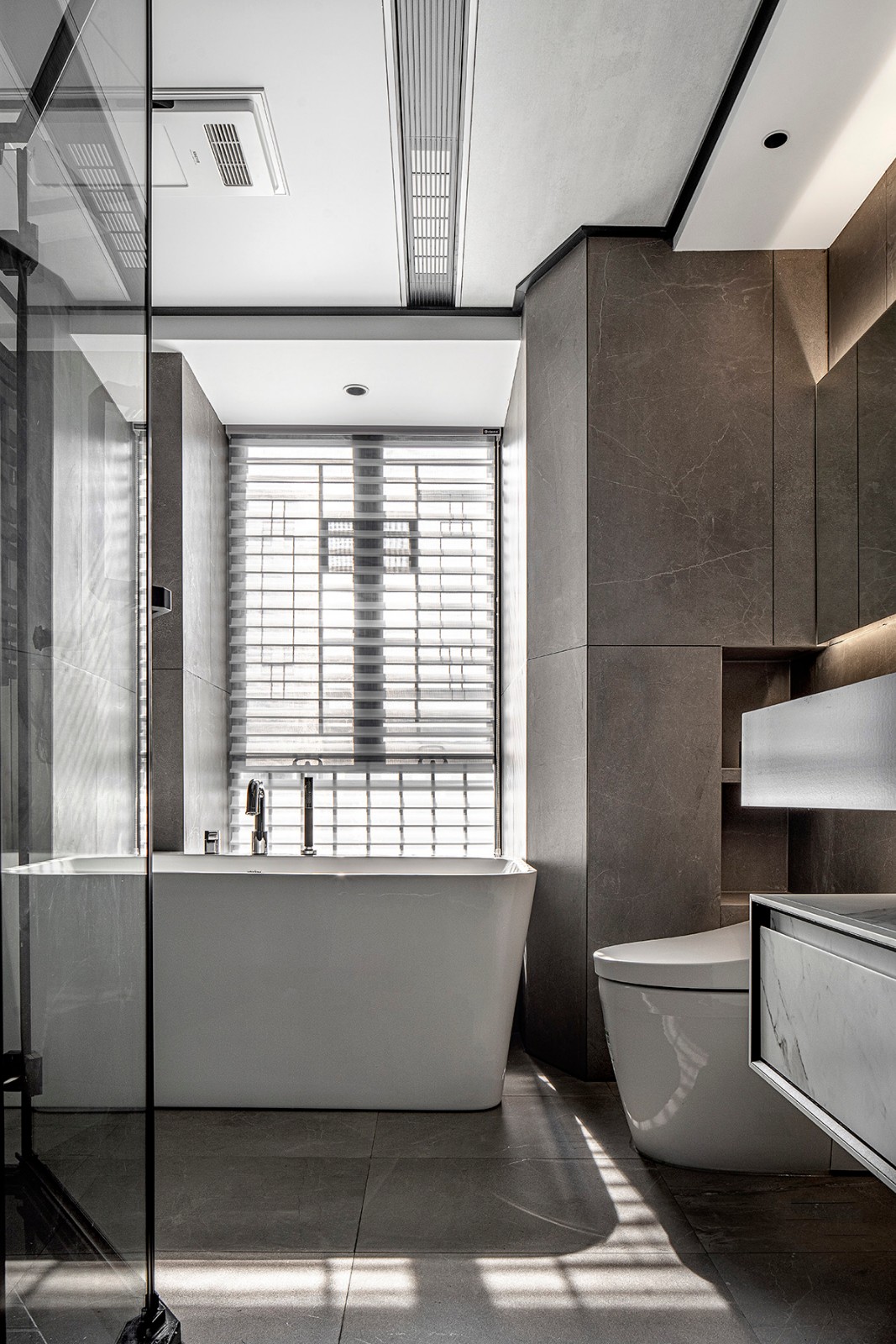 主卫的设计同样采纳了灰白色基调,在洁净感之中,低调与素雅尽数展现。半开着百叶窗,泡个澡,***的疲惫洗净,静享一夜好眠。