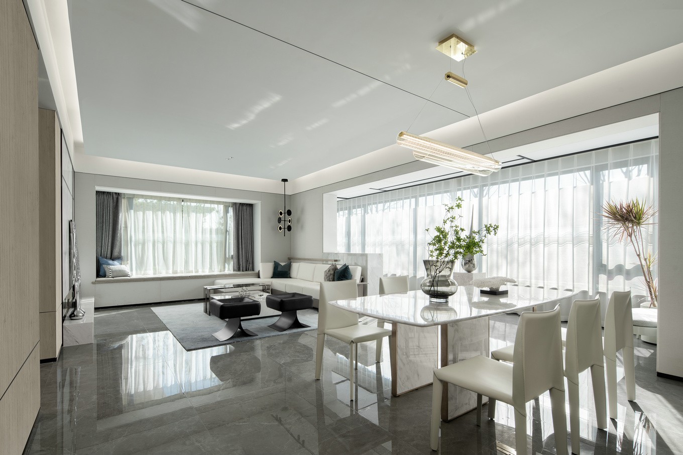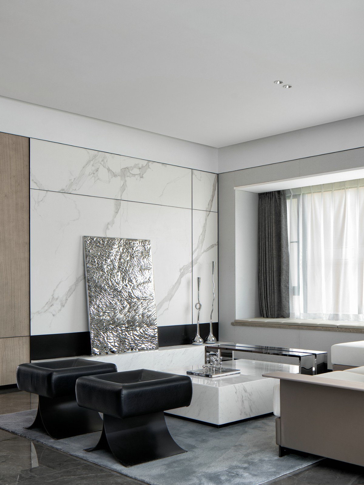 整个空间材料以大地色系为主,***灰的面料、纯色皮革、大理石的巧妙使用,与温暖的橡木色、金色相辅相成,集质感、设计感和舒适于一体。营造出高品质的轻奢居住体验。
