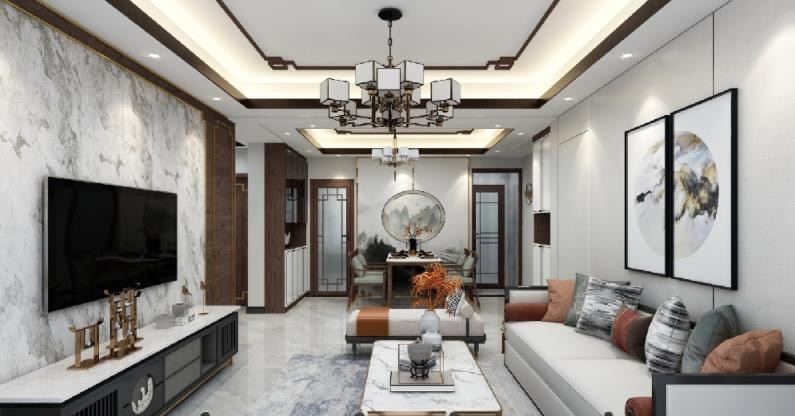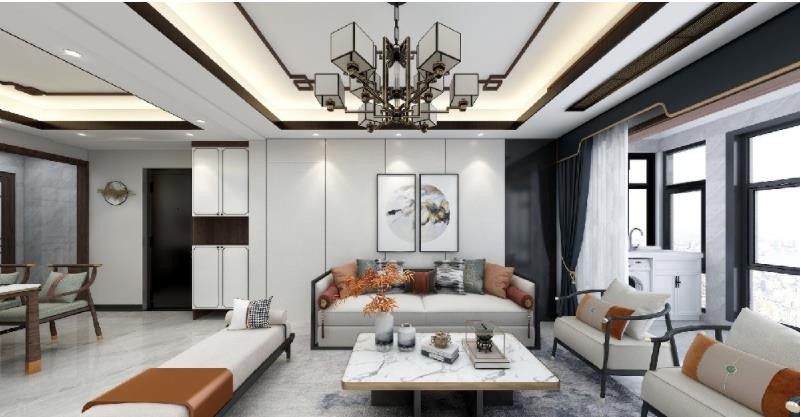 客厅继承了中国古典的设计元素,又融合了现代简约的设计风格