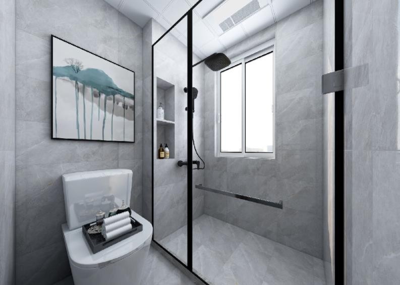 整个空间保留了中式的韵味,还加了大理石、玻璃、灯带等现代材料