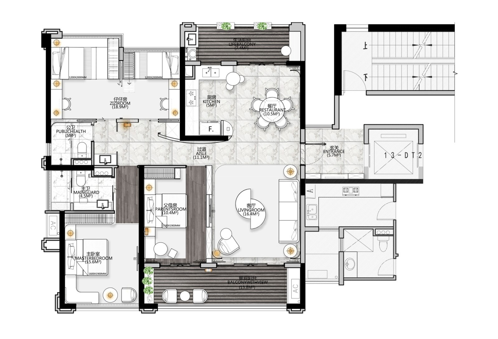 原始户型格局方正,改动很小,业主主要是喜欢拥有***彩好看的家。