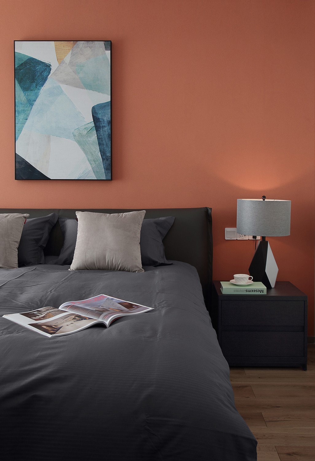 卧室空间并没有选用流行的软包背景,而是采取直接刷漆,节省了成本