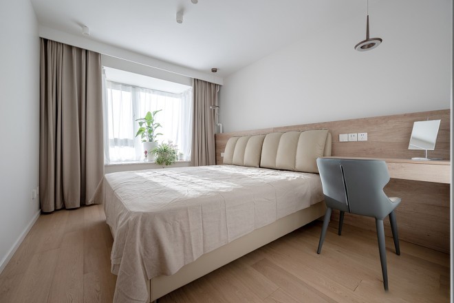 材质与材质之间的运用碰撞,不仅塑造出了私属空间应有的温馨与舒适,也传达出了业主一种胆大心细、张扬又静谧的心理。 主卧代表着极具隐私性与个性化的美好体验,不同色泽创造不同质感,空间仍能拥有协调统一的精致底色。