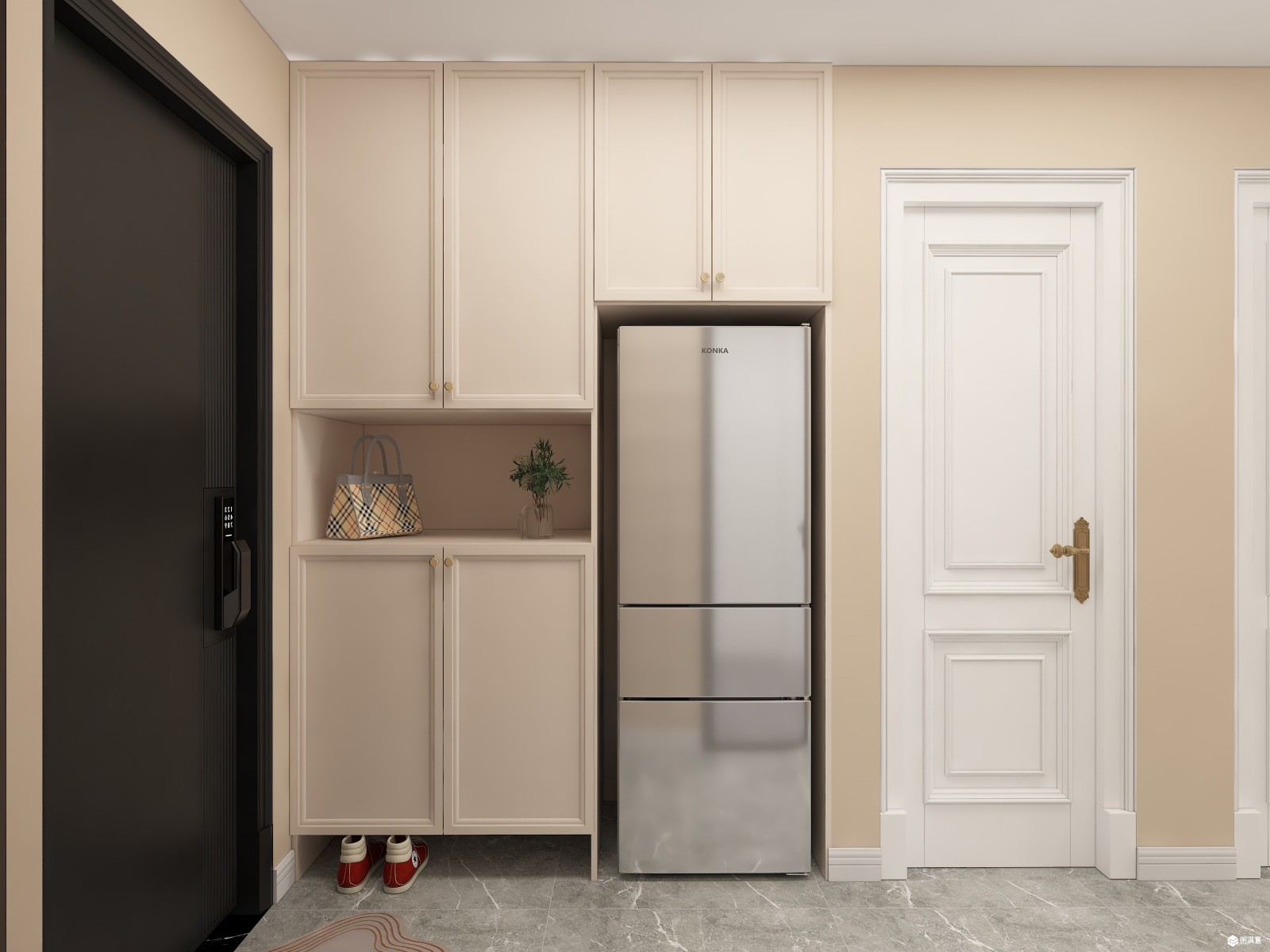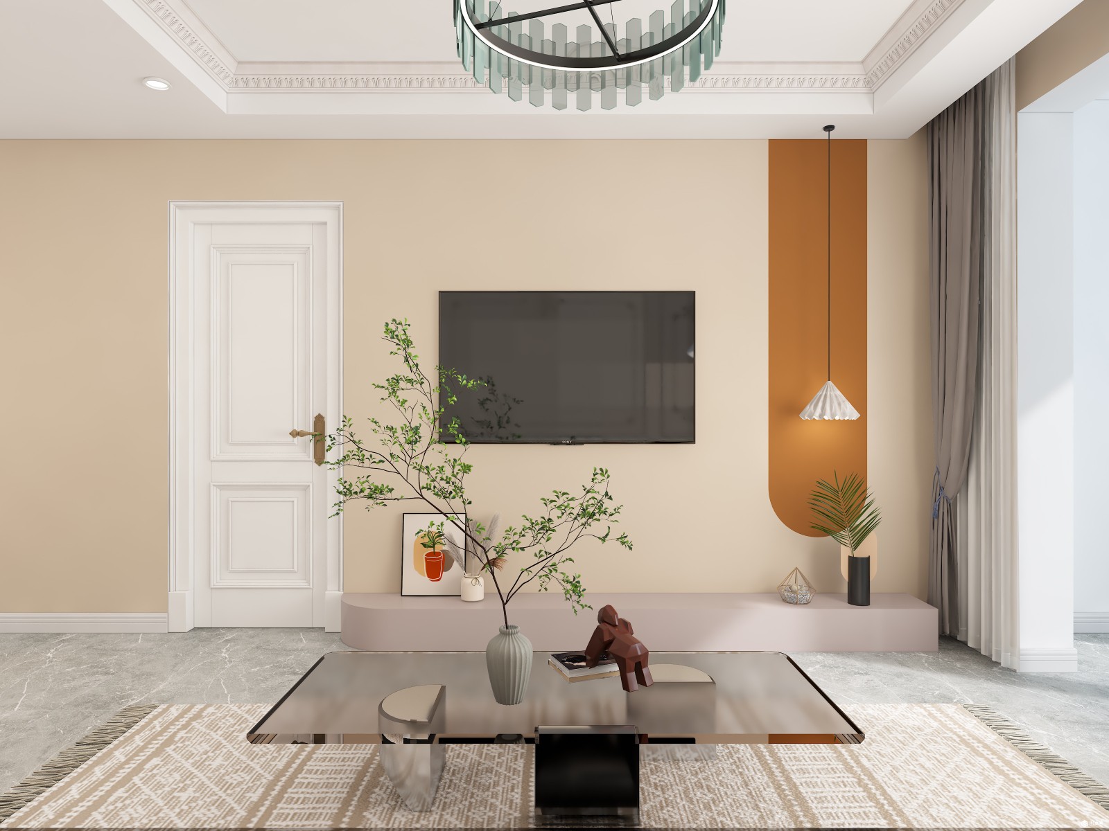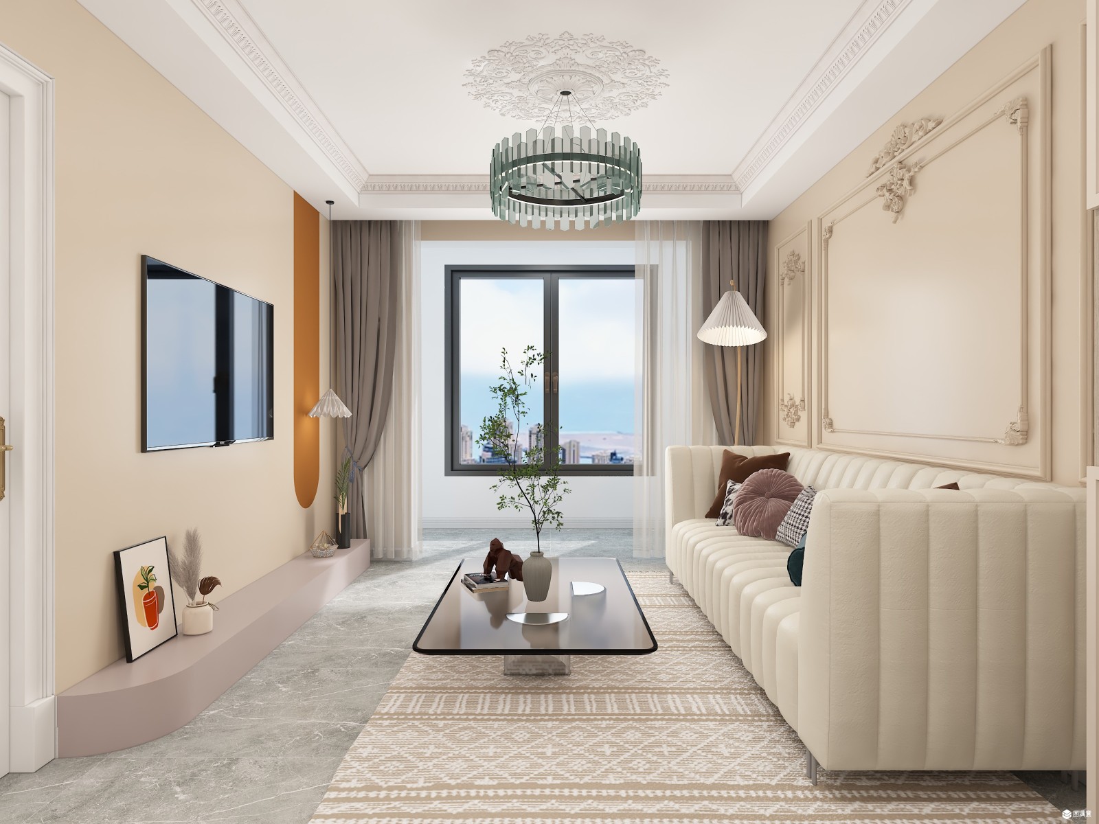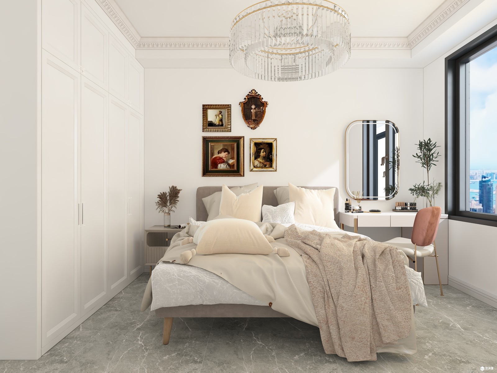 法式浮雕花纹做墙面造型,奶咖色的墙面让素色墙面增添一分温度,淡雅的色彩更是空间的灵魂。
