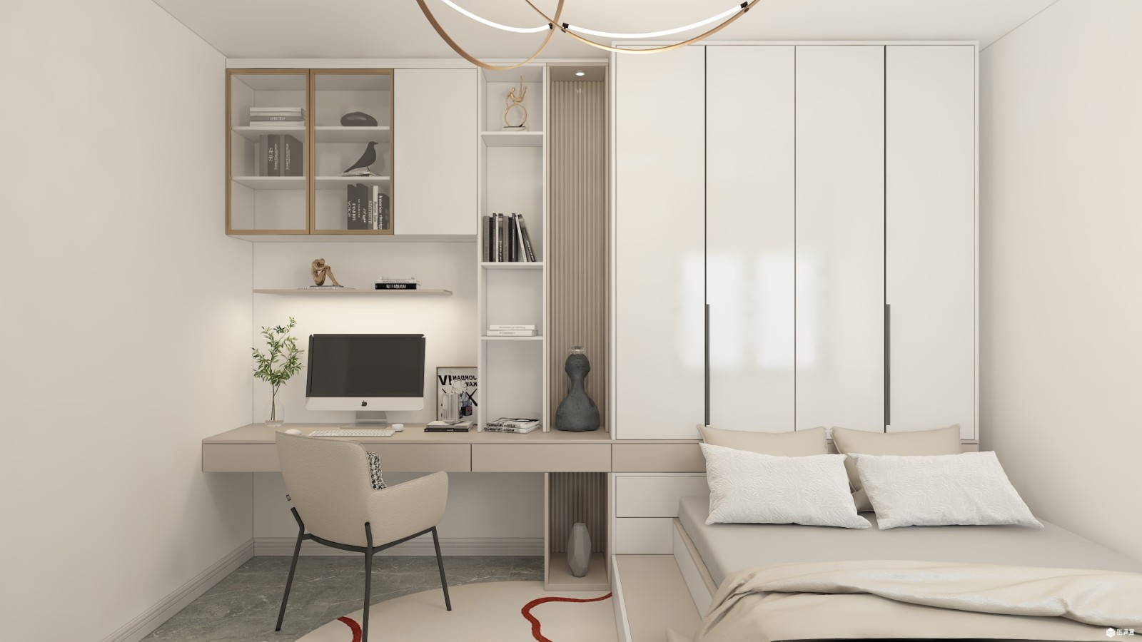 儿童房以白和中性色为主调,静谧、舒缓、柔软。