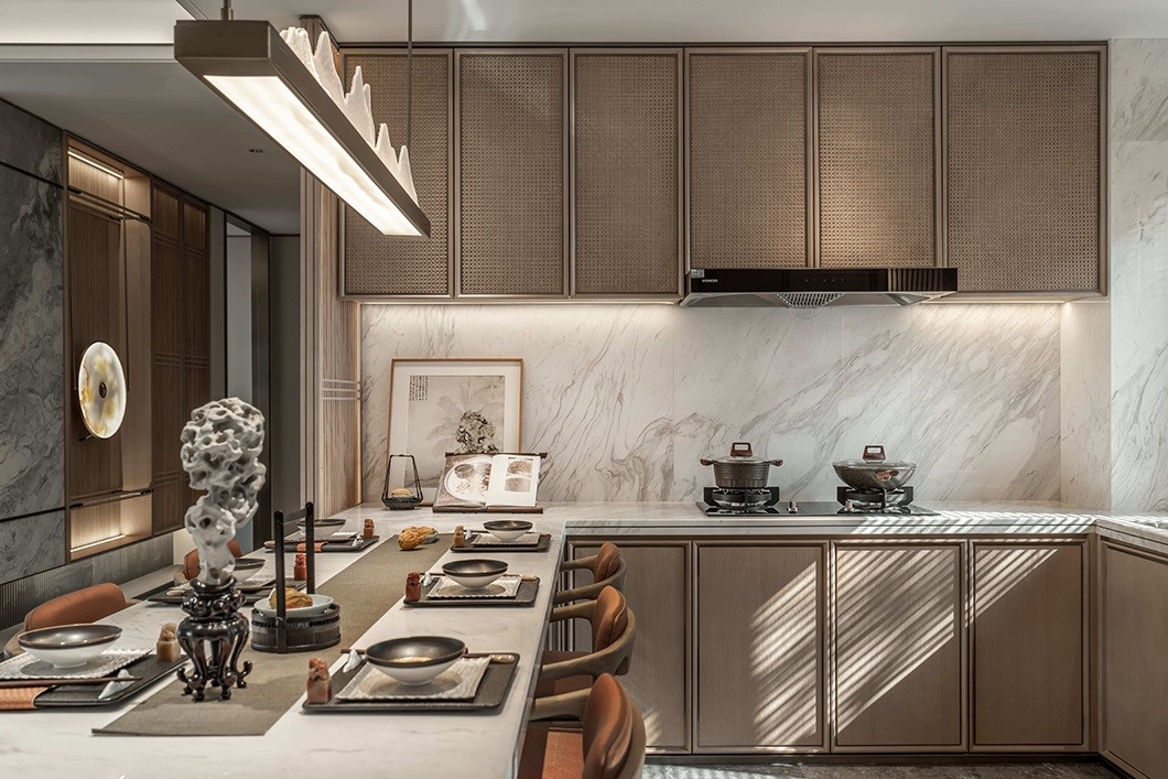 设计团队对于餐、厨关系的思考相当有深度,不仅要为两个功能区域创造紧密的联系,更要在某种层面上映射功能之于体验的演变轨迹。