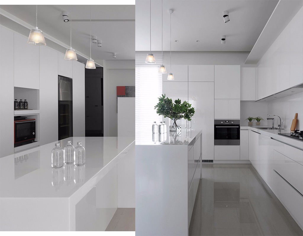 厨房也是象牙白的家具和石材搭配,白色调占多,让人感觉很干净舒适!