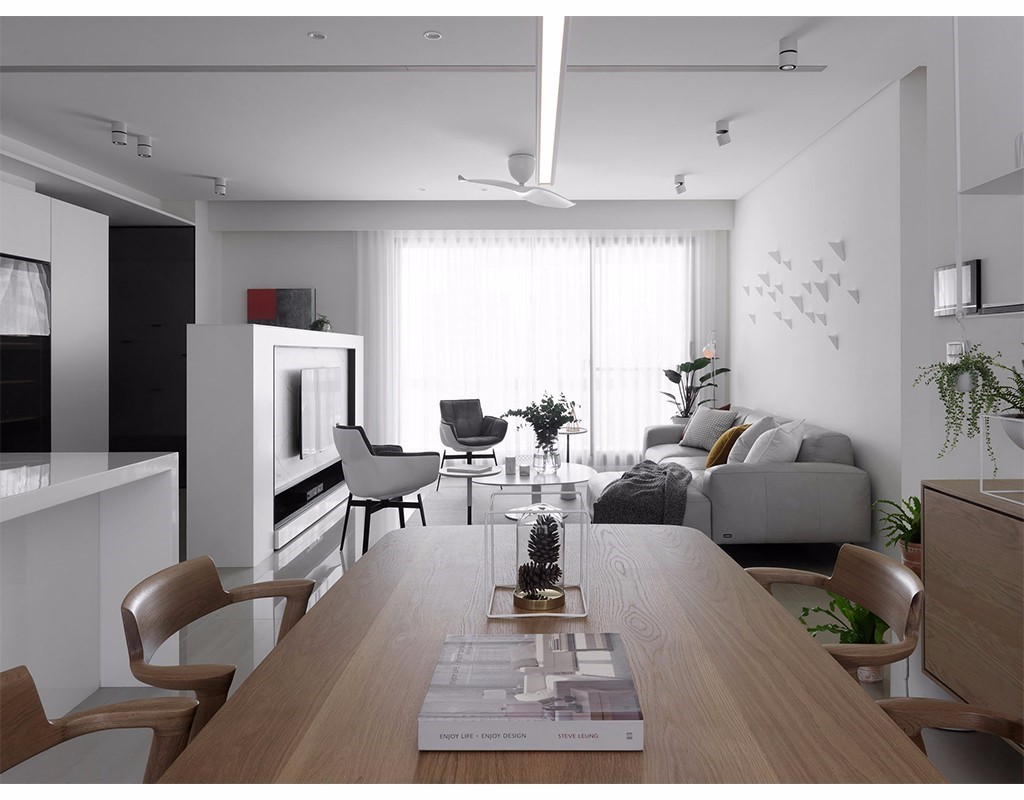 因主人家的性格比较喜欢干净清新雅致的感觉,所以墙体都是白色的乳胶漆,部分家具也是用的象牙白,加上原木的家具质朴温润,整体是非常舒适的