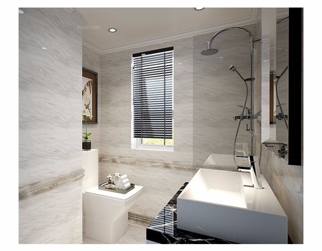 卫生间通风和光线特别好,保持了卫生间的干净,也是白色为主的色调,石材使用较多