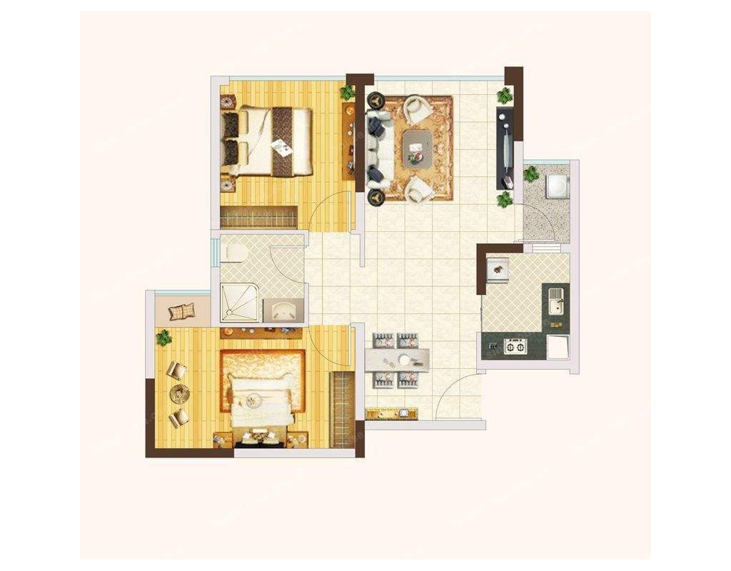户型比较方正,每个房间功能区都比较齐全,还设立了一个小小的生活阳台