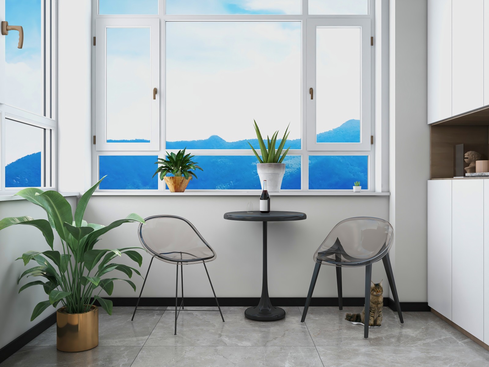 阳台主要功能休闲,晾衣服简单刷乳胶漆就可以,提升空间感