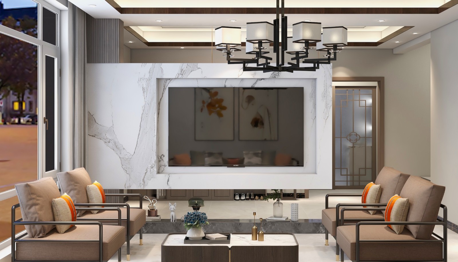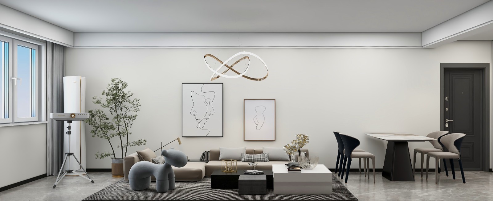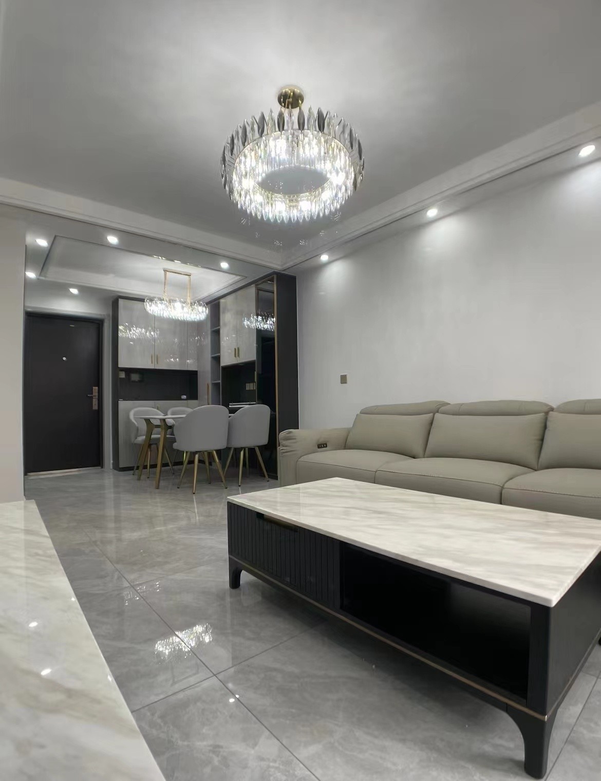 轻奢风客餐厅实景展示。