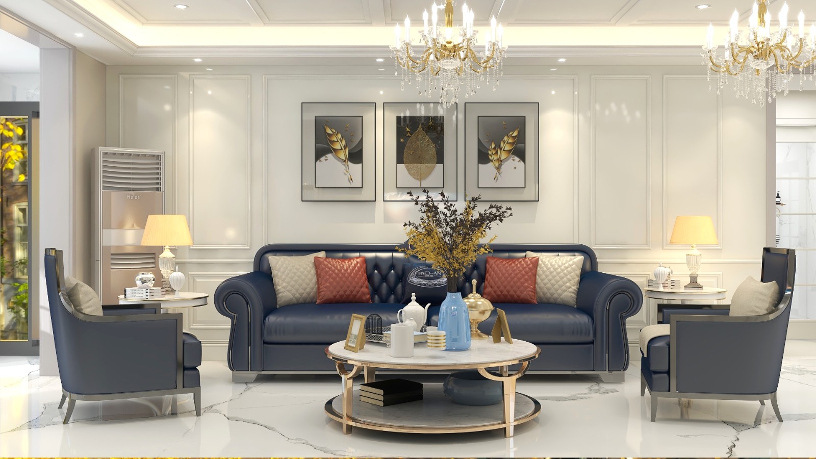 鸿坤理想尔湾三居一卫,轻奢风格