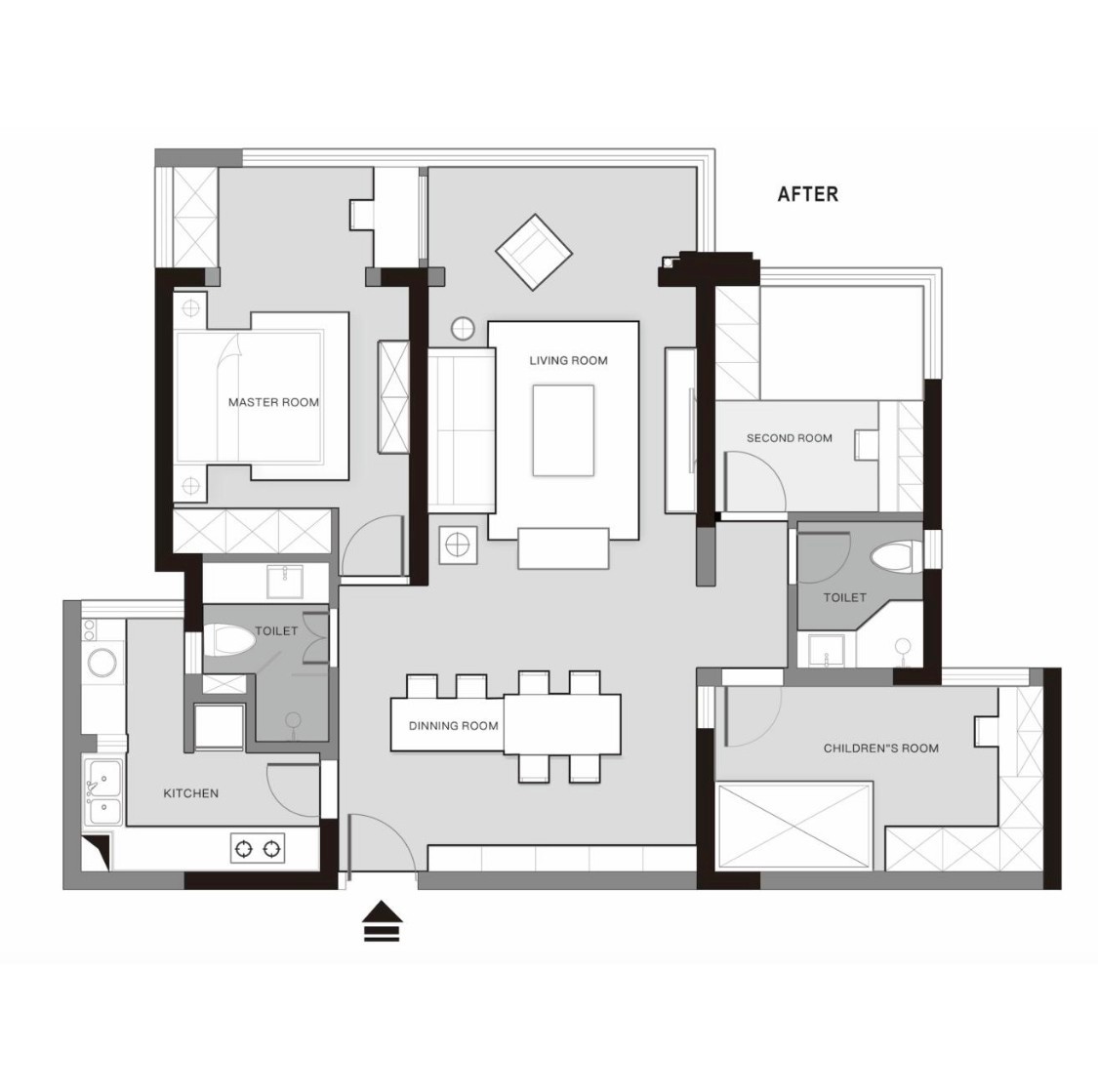这是一套方正的套三户型,目前为年轻小两口两人独居,夫妻两人希望除主卧外,能提前规划好儿童房,为未来的宝宝做准备。还希望有个弹性空间,平时可以做两人的书房,亲戚朋友来也可以做客房使用。在风格上,小两口既喜欢美式风格的内敛稳重,又中意北欧风格的轻松灵动,期待在这个家里这两种不同的情绪可以融合共生