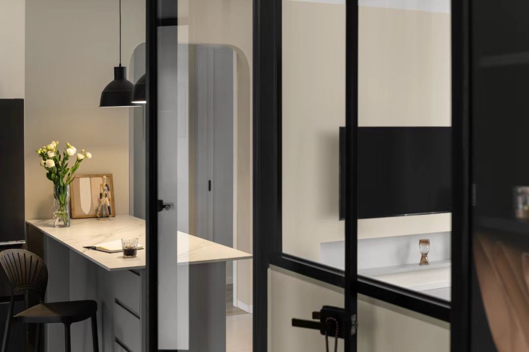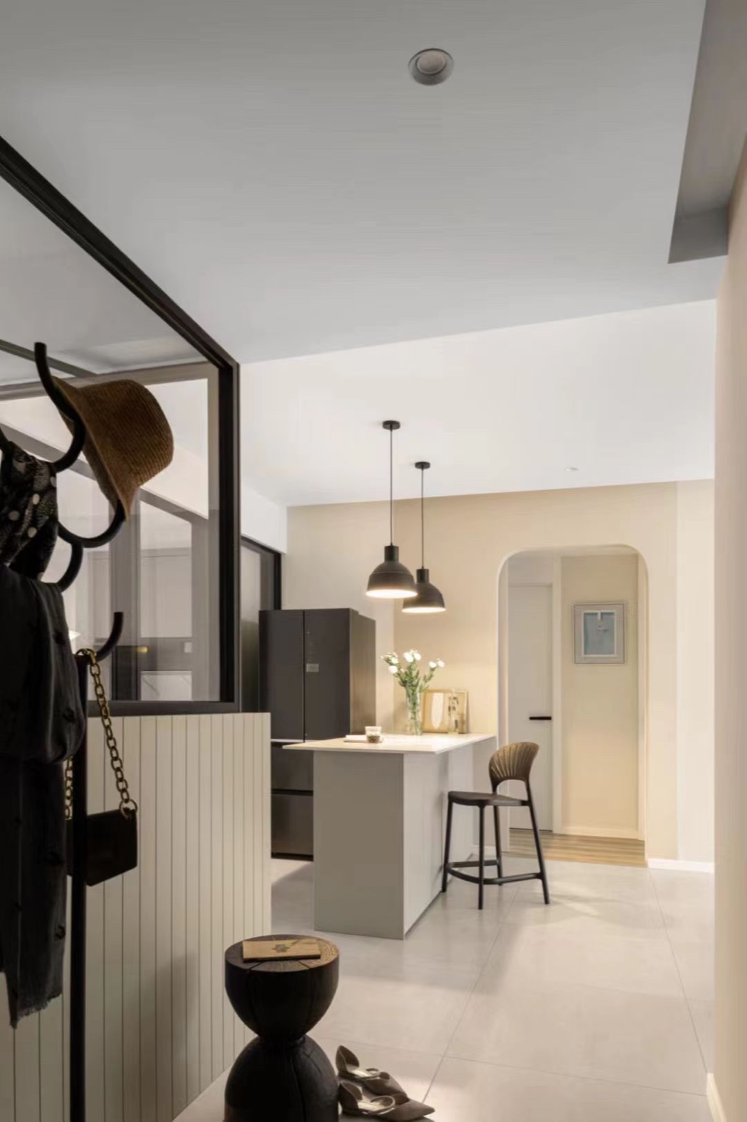 为了实现空间的宽敞开阔,设计的***步就是将局促的玄关打开,并利用书房的玻璃材质,让更多的光透进来。
