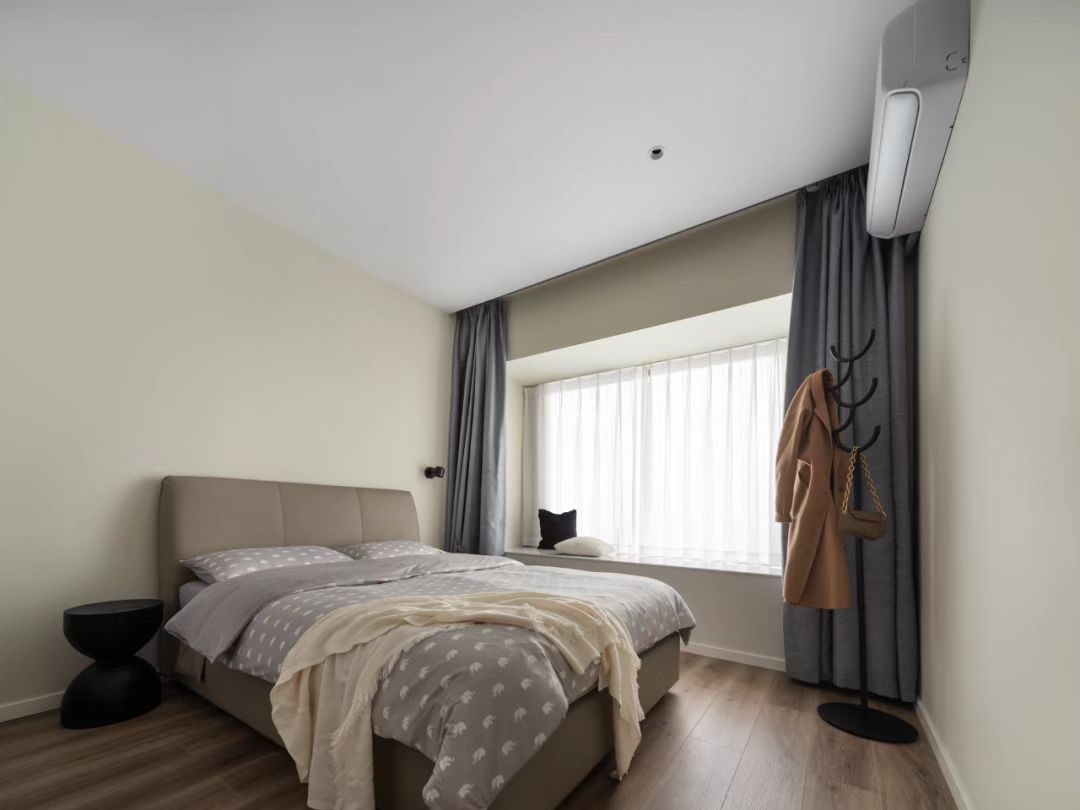 隐藏在内部的主卧,只需要为居住者服务睡眠功能,温馨简洁的材质与色调,提供闲适安静的空间氛围。