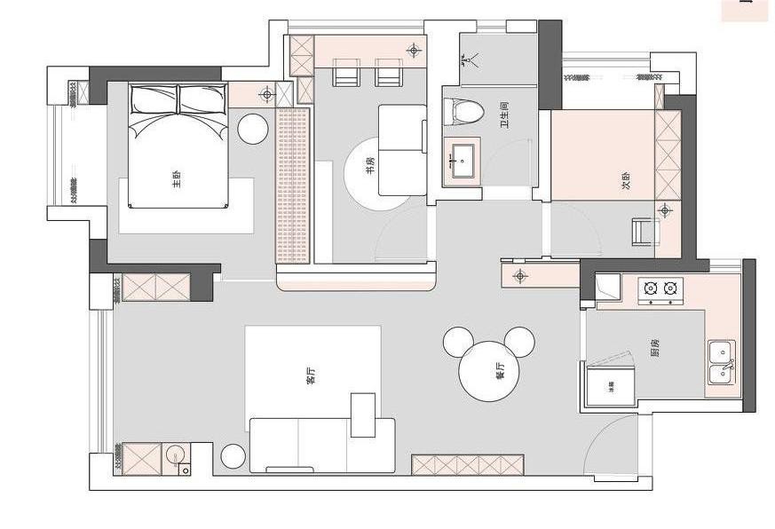 压缩书房开间之后,主卧得以释放大容量衣柜和梳妆台区域。