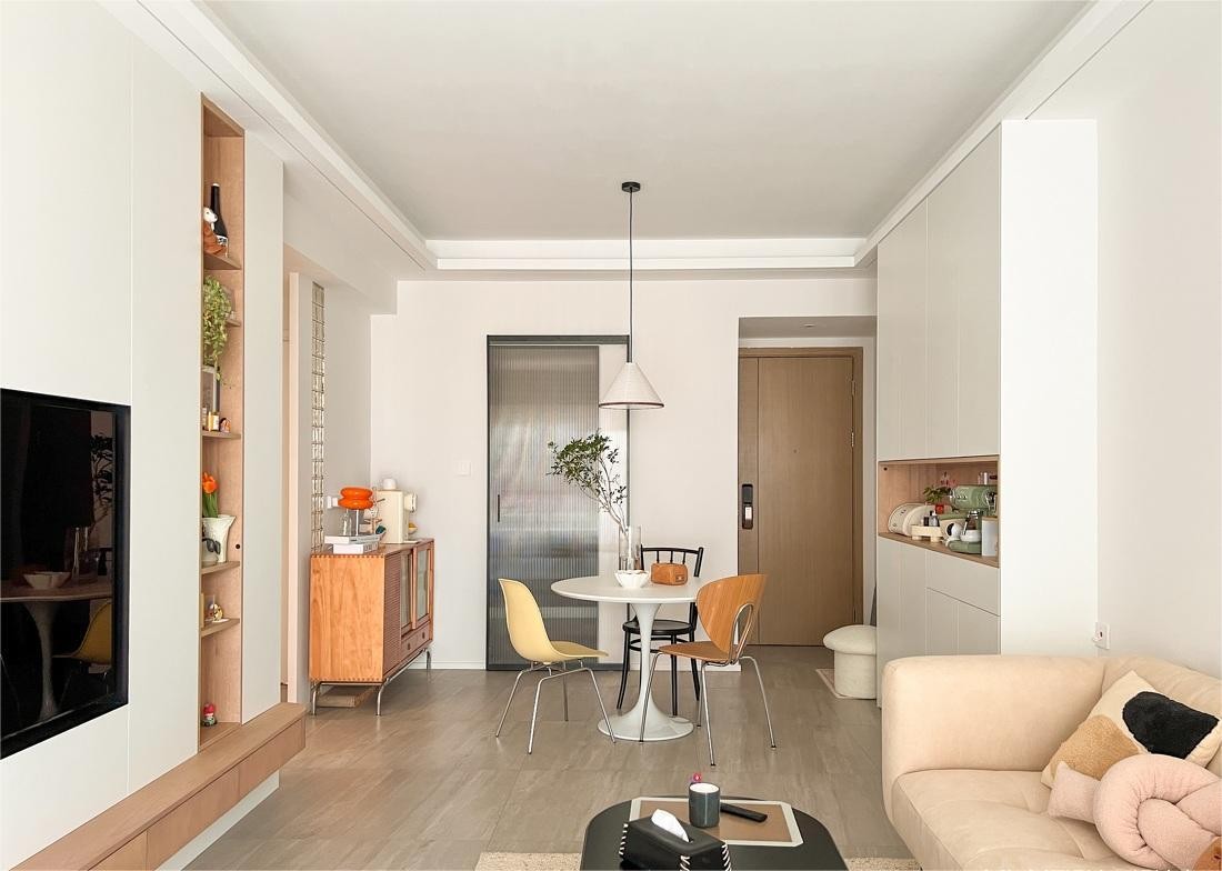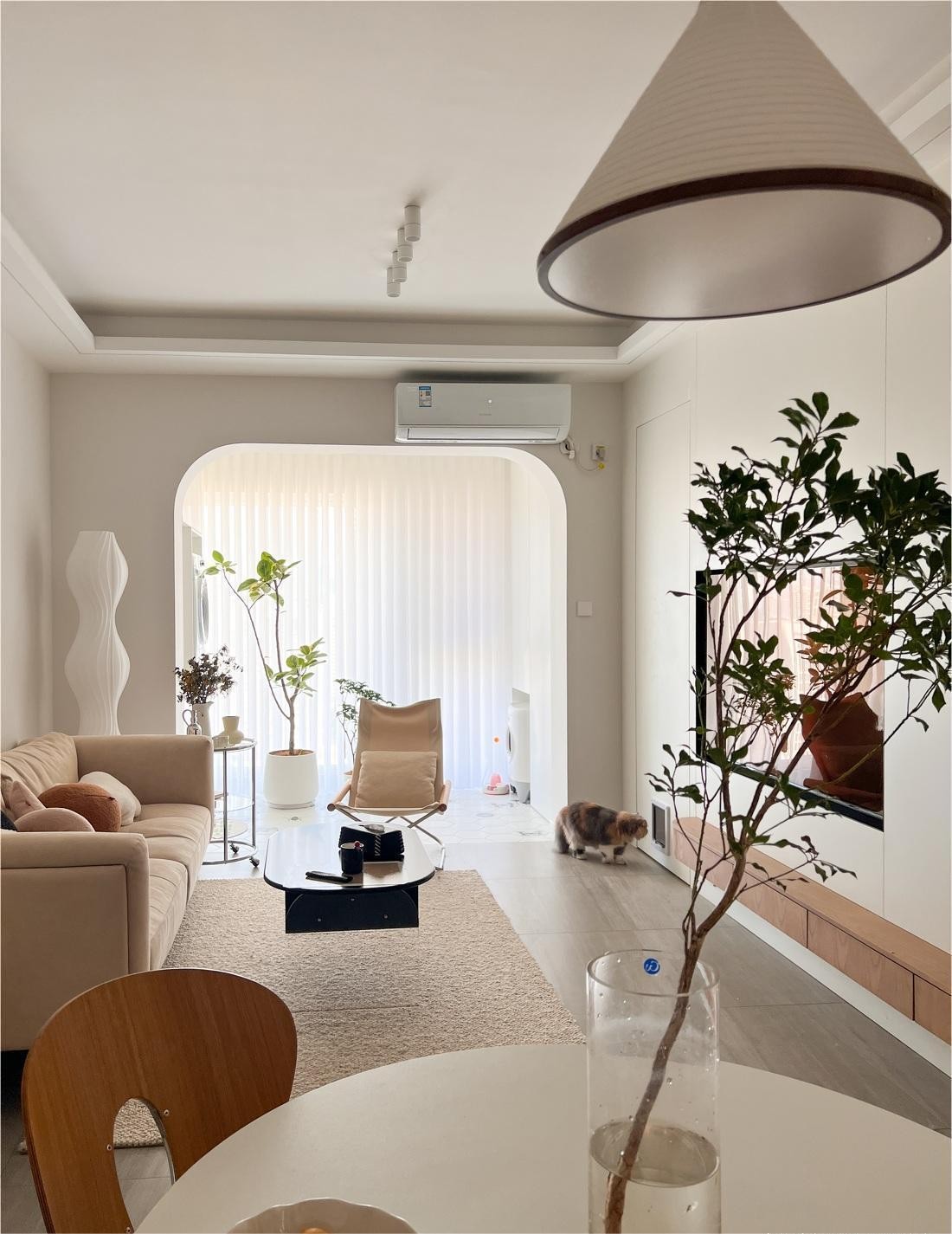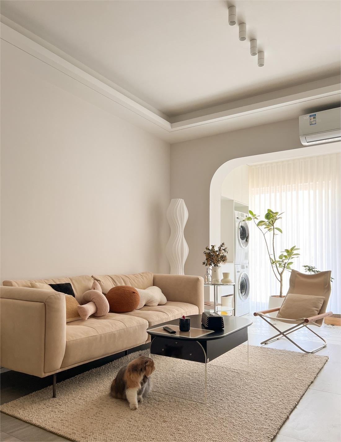 功能家具以轻盈造型或奶咖色串联,围合兼具实用与个性的休闲区。