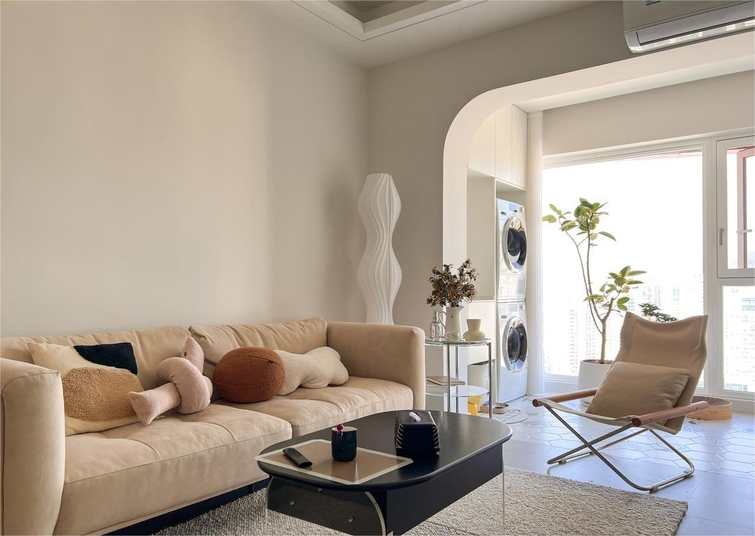 阳台封窗纳入休闲领域,为空间引入入大片视野和采光,不同质感的奶白围合立面放大视觉效果。