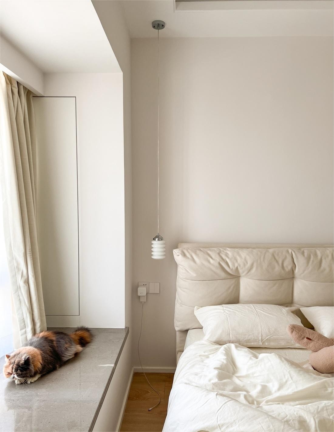 80***三房主要居住成员是两位新人和一只可爱的加菲猫,屋主想保留原三房分别做主卧、书房和临时客房,同时想要较多的储物空间并且好清洁打理。空间上中和女屋主喜欢的奶油和北欧风格,以清新简约色调为主,搭配轻盈造型家品营造慵懒惬意的温柔家。