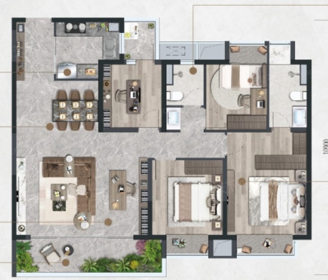 客餐厨一体化大气宽敞,自带面宽阔景的超大阳台,幸福生活“大”不一样。