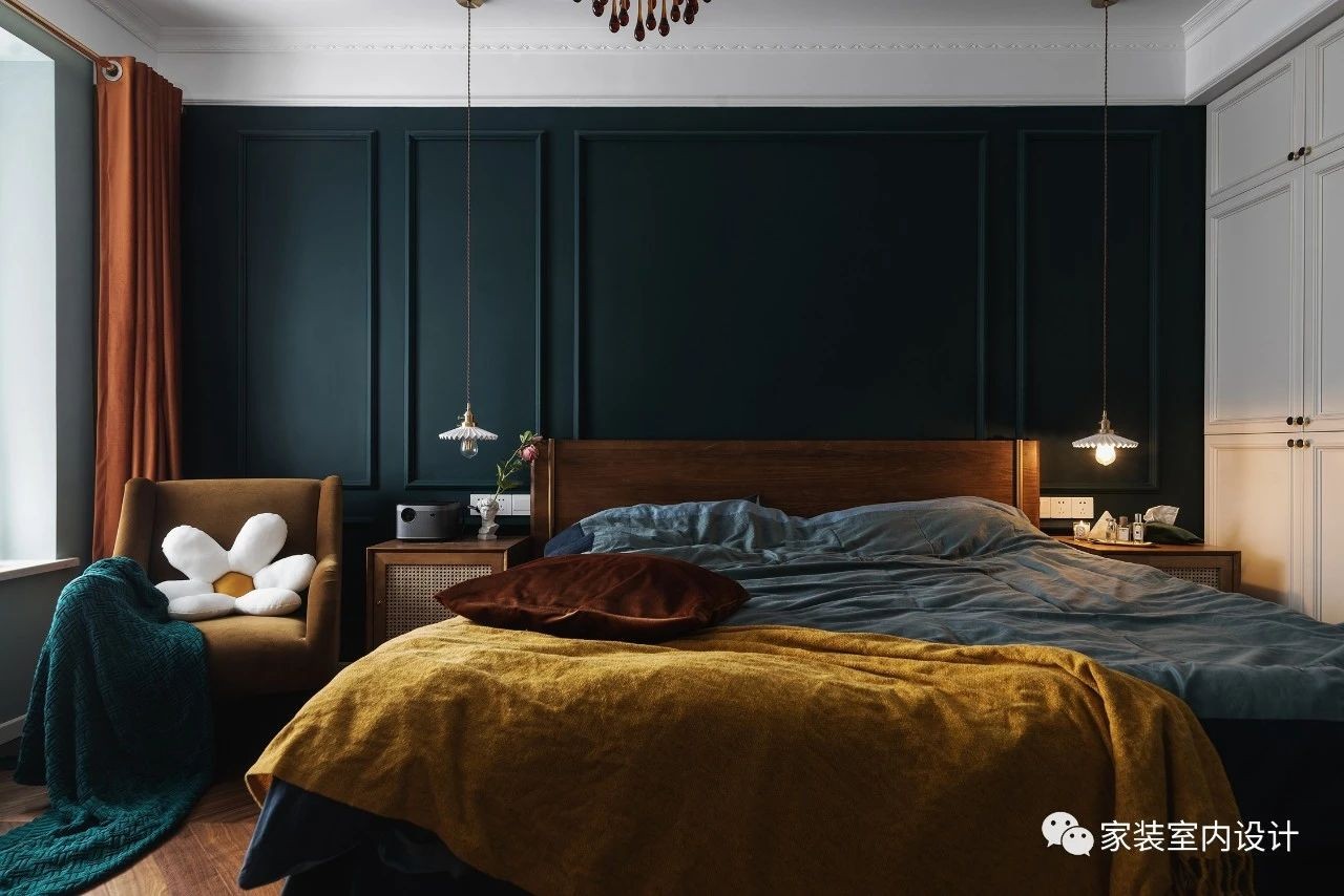 卧室色彩的运用大胆而准确,明暗有序、轻重有致,他们塑造了不同的空间性格,甚至超越了造型、功能的影响。