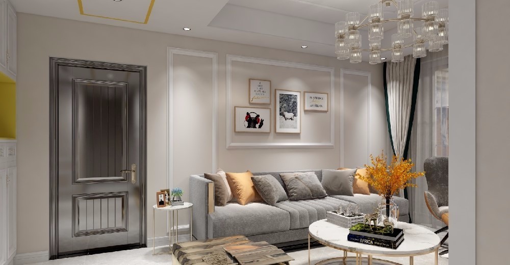 整体户型规整,每个空间都比较合理,空间以暖黄色为主,搭配浅灰色沙发,浅灰地板,色彩层次分明,颜色也不会显得突兀,给人很好的视觉感受。简单的欧式风格使家居空间温馨而醇厚,更具有生活气息。
