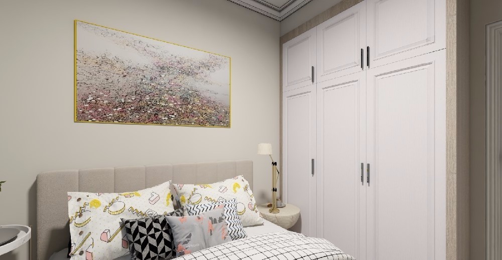 次卧,作为客房使用,简单做个衣柜,储物空间足够