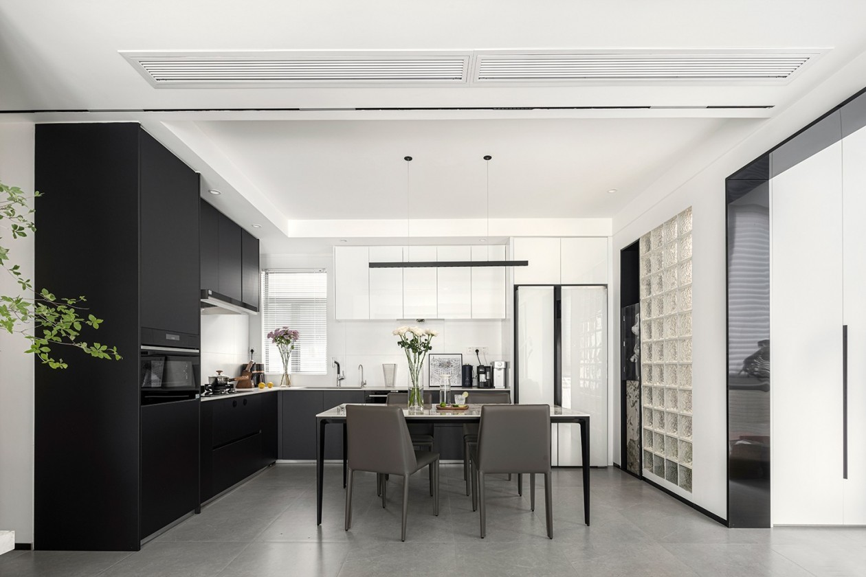 T式设计赋予厨房小巧既完整的功能性,黑白之间的拼接,对话起生活里柴米油盐,简单的色彩让情绪舒缓,去繁就简,在简单的空间里,寻求内心的宁静。