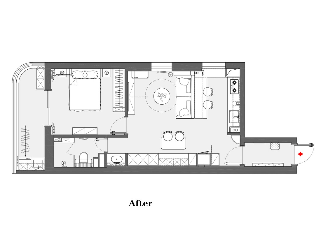 针对房子的弊端,我们将厨房开放,将原本各自独立的空间有效整合,释放小家的空间感,通过重新分配公共区域和其他功能区的比例,让原本饱受收纳缺失之苦的卧室和局促昏暗的卫生间,重拾宽敞明亮。