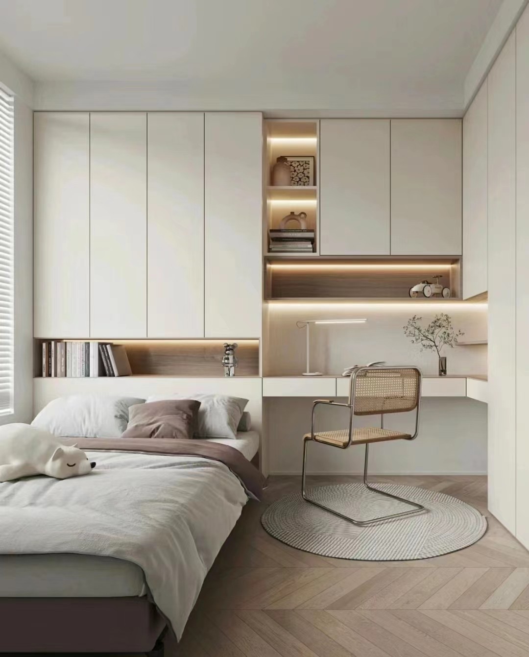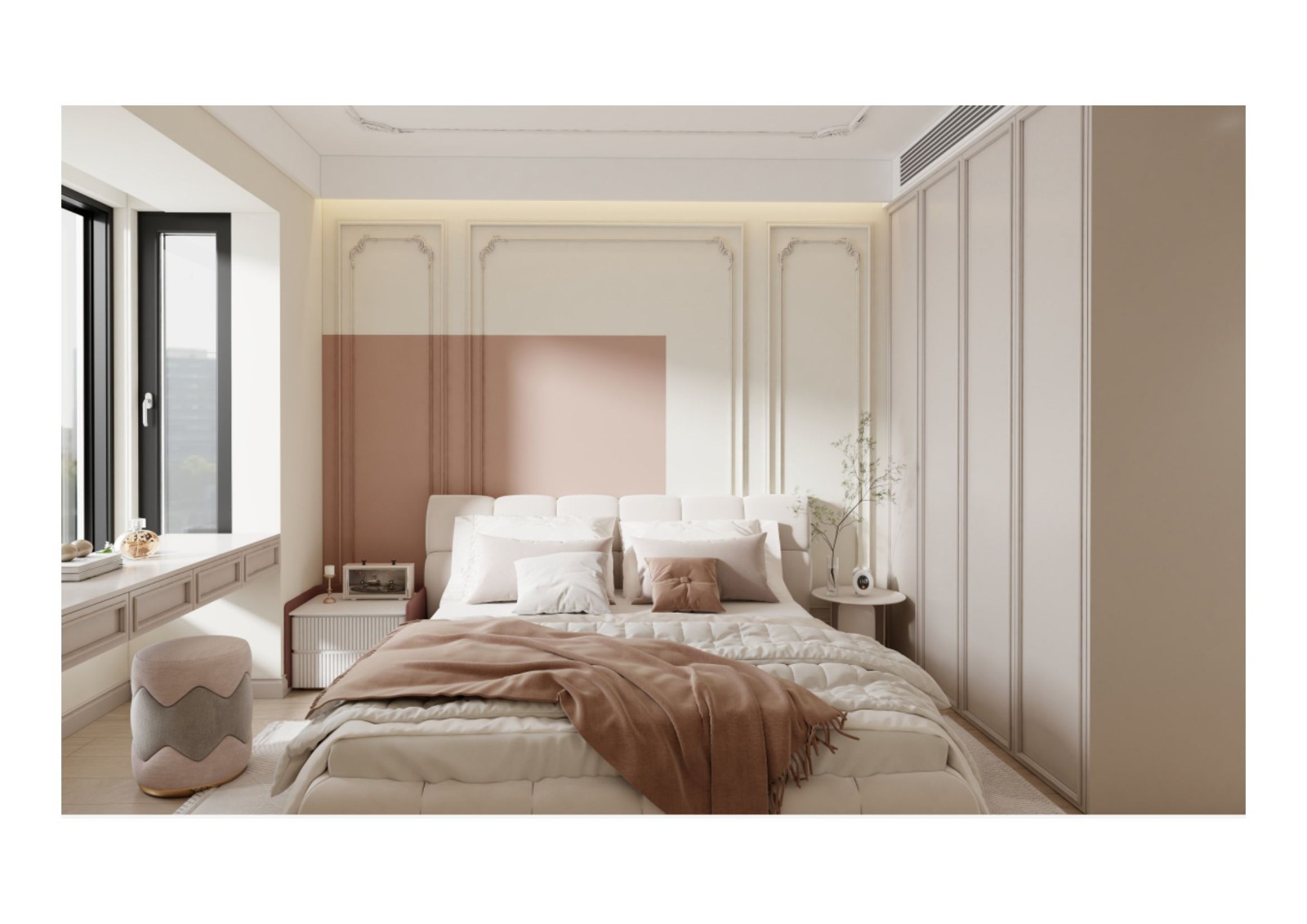 配以奶色家具和奶油色的软装,营造出温馨、甜美的氛围。这种设计风格适合喜欢温馨、浪漫氛围的人士,