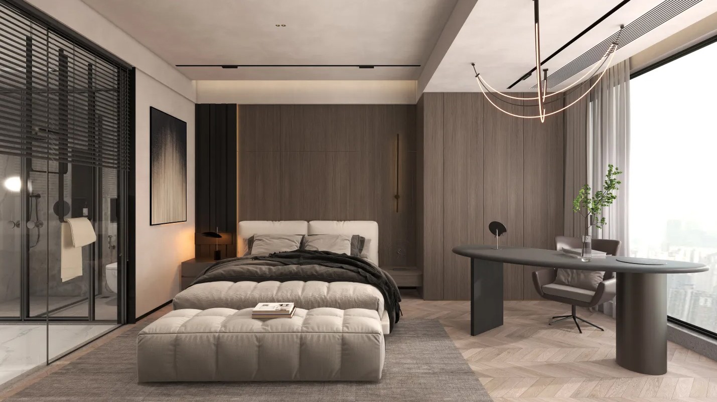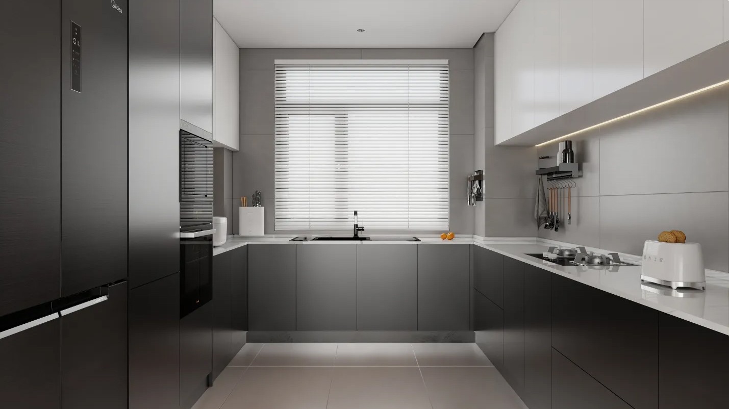 套色橱柜,实用的灯光让厨房使用起来更加方便