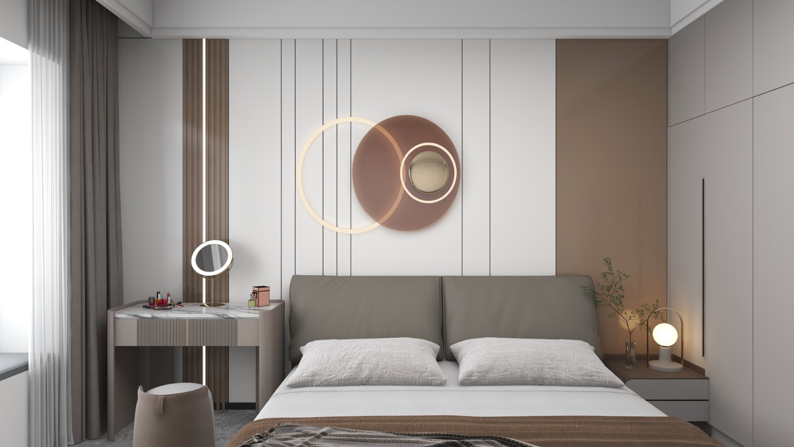 护墙板床头背景加灯条,大气,活跃