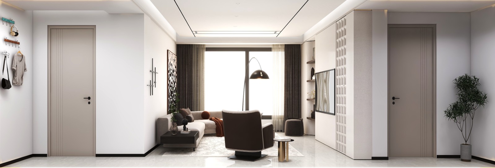 充满艺术感电视墙,有pu格栅 还有置物平台。艺术气质一下子就有了。