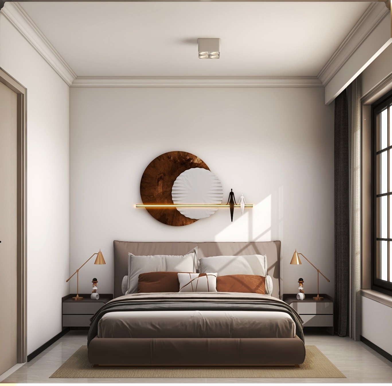 背景墙大气简约,梦幻帘飘逸自然,主卧空间舒适自然。