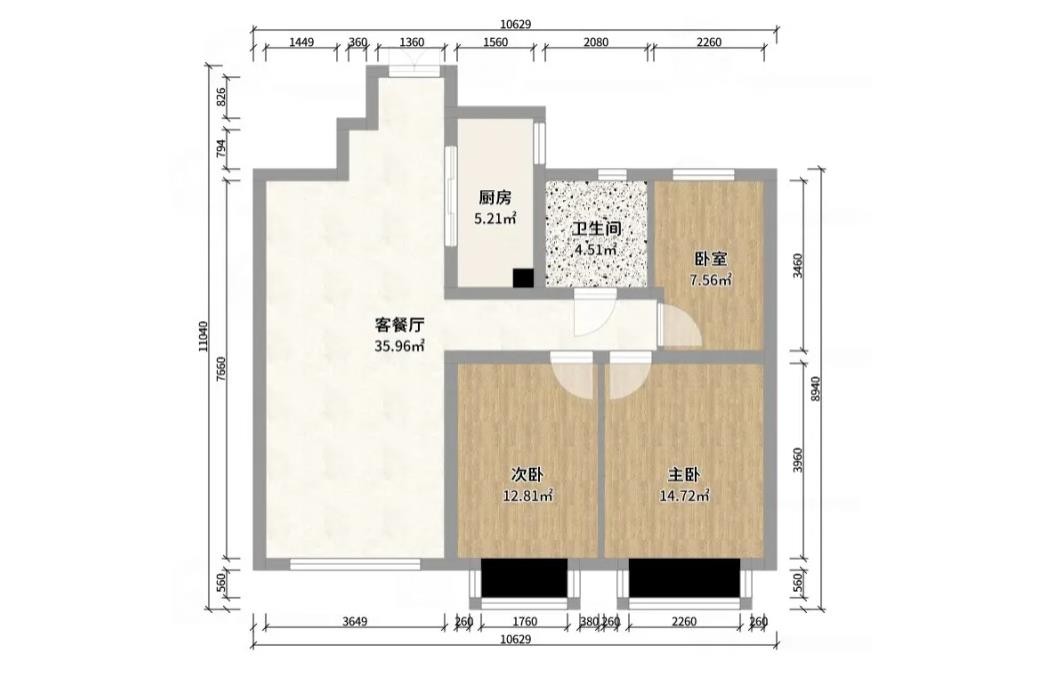本方案为3室2厅1卫1厨