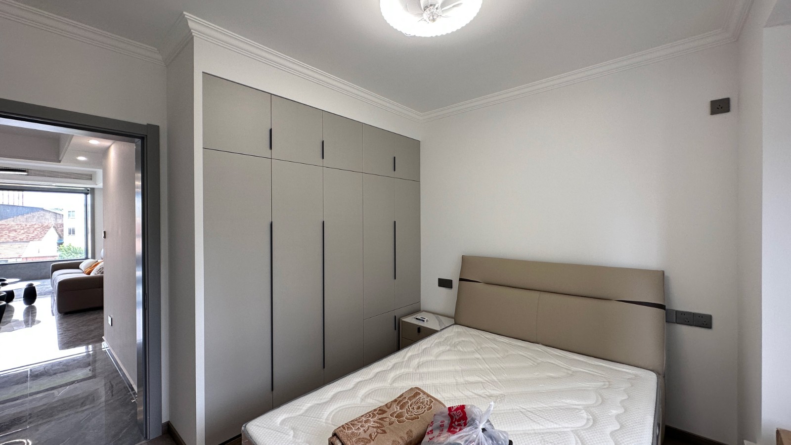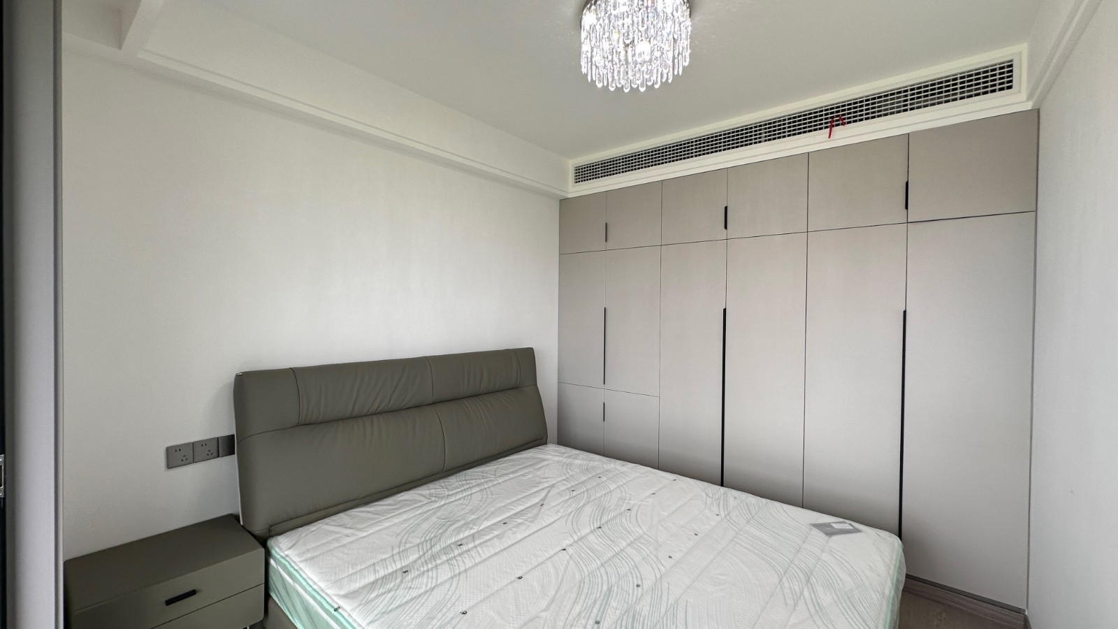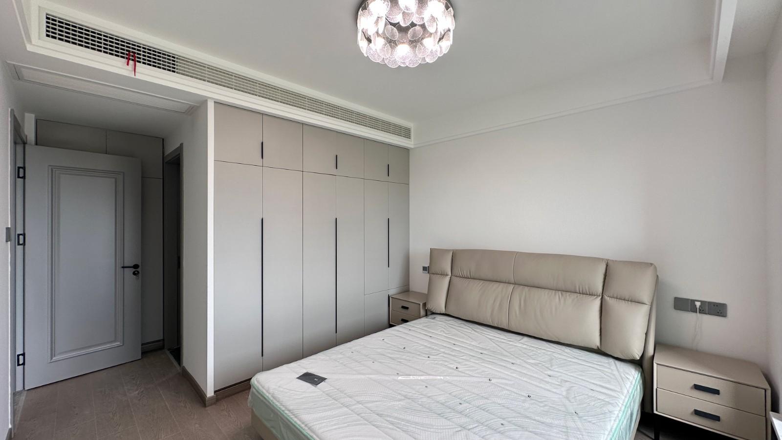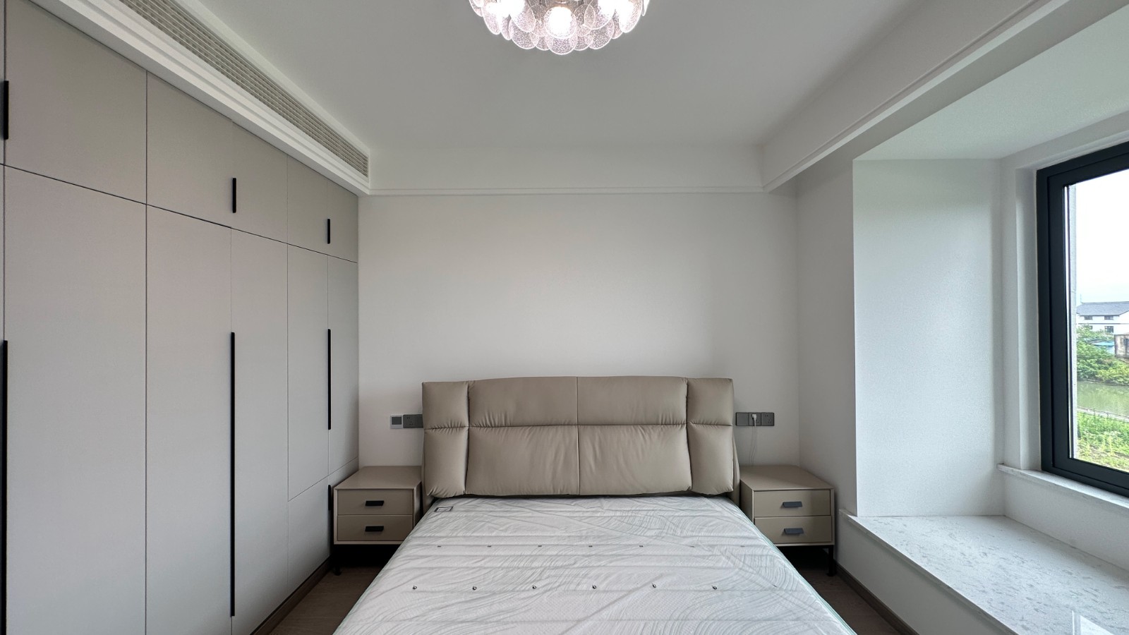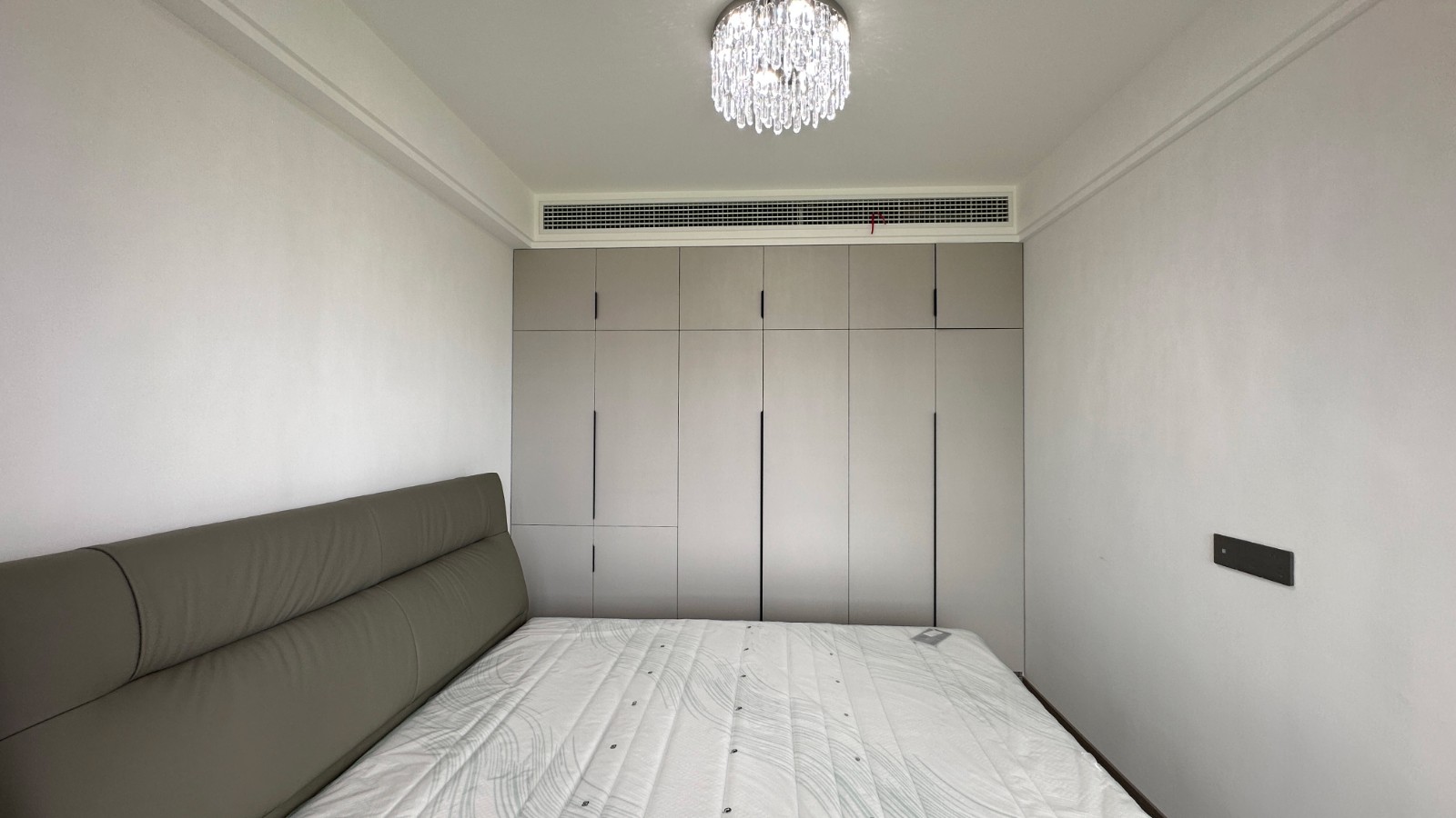 衣柜通顶设计,不浪费空间,床头柜位置柜门做了分段设计,拿取衣服更加方便。